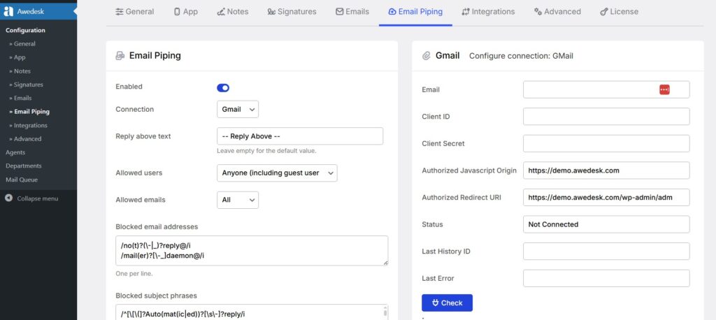 A WordPress business needs more than email. It needs structured conversations. With Awedesk, email piping allows customers to send emails as usual while agents reply inside the support interface. This keeps the customer experience familiar while giving your team a proper workflow behind the scenes. You do not lose the convenience of email, but you gain organization, visibility, and control. That is a major difference between simply receiving messages and actually managing support.