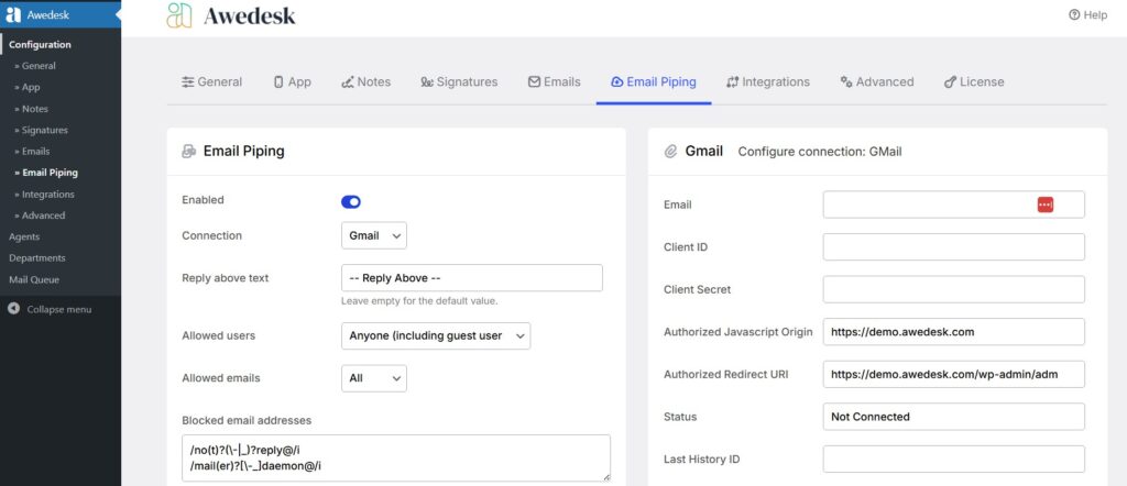 This is one of the clearest places where plugin comparisons become real. Awedesk includes Email Piping in all pricing tiers and also supports multiple designated inboxes mapped to departments. Plugins like SupportCandy offers email piping through an extension. When email handling is bolted on instead of built in, the setup cost and maintenance burden usually go up with it.